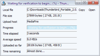 Una vez se ha terminado la subida, UniUpload te muestra la dirección de descarga. Resulta, por tanto, un programa tremendamente util y casi imprescindible para los asiduos a MediaFire e ImageShack.